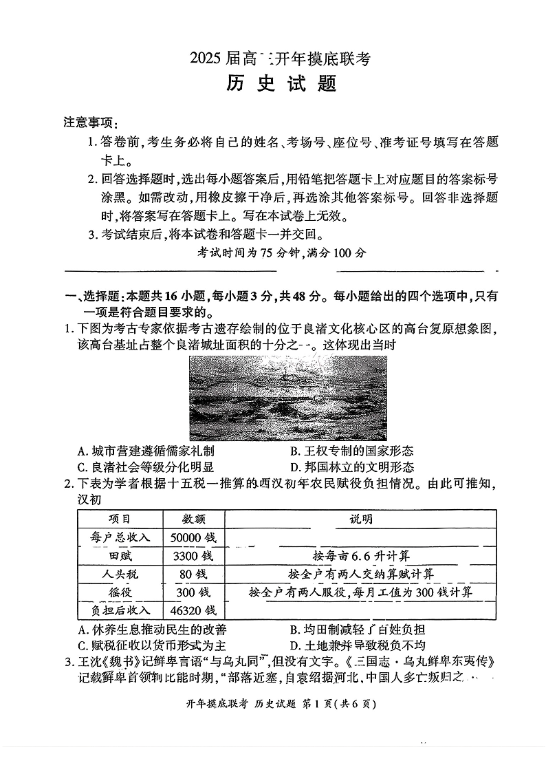 百师联盟2025届高三开年摸底联考 历史(含答案).pdf