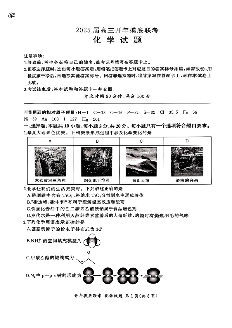 百师联盟2025届高三开年摸底联考 化学.pdf