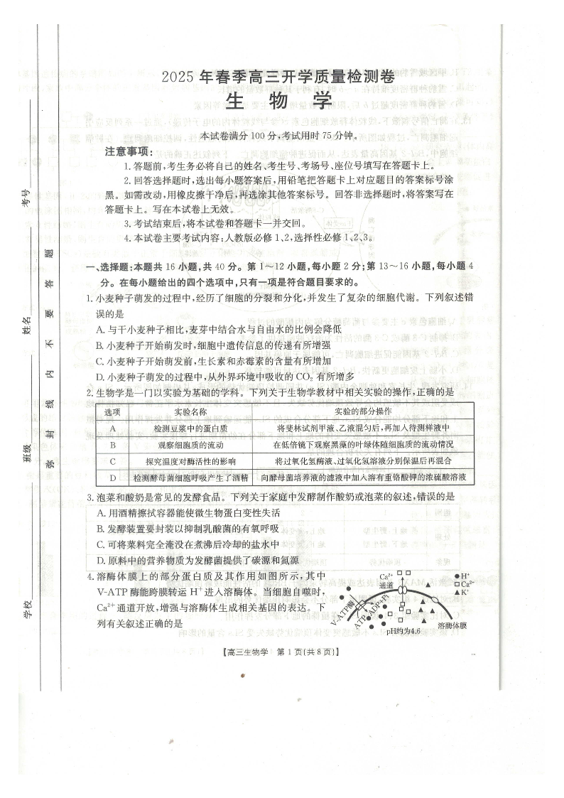 广西壮族自治区桂林2025届高三春季开学质量检测卷 生物.pdf