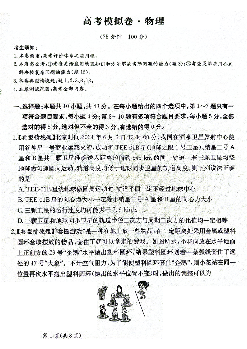 甘肃省2025届高三下学期高考模拟卷 物理.pdf