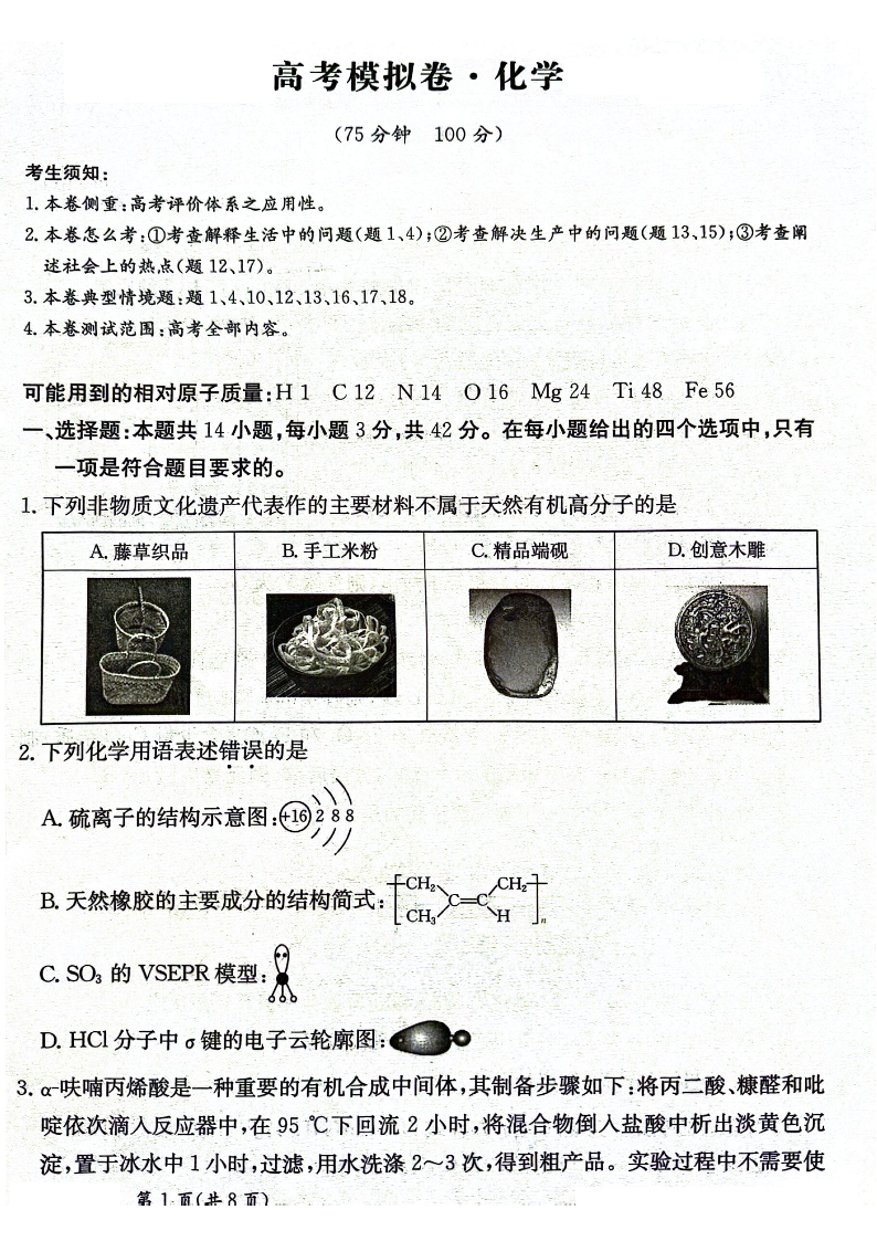 甘肃省2025届高三下学期高考模拟卷 化学.pdf
