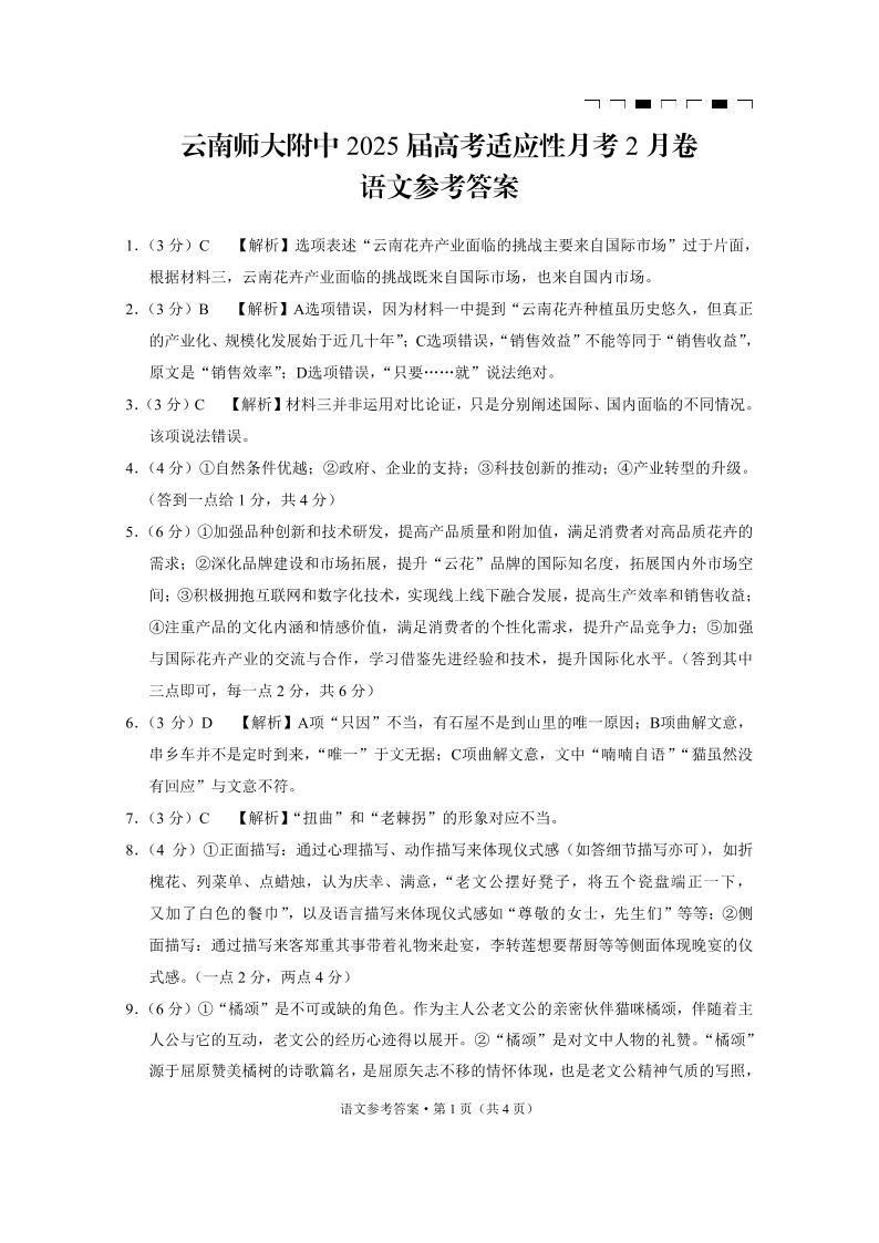 云南师范大学附属中学2025届高三下学期开学考试 语文答案.pdf