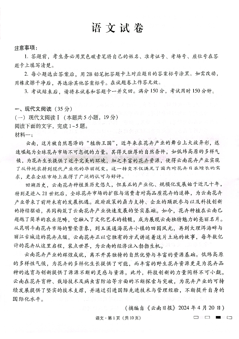 云南师范大学附属中学2025届高三下学期开学考试 语文.pdf