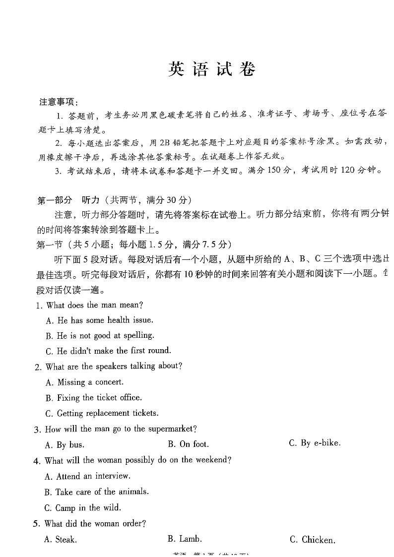 云南师范大学附属中学2025届高三下学期开学考试 英语.pdf