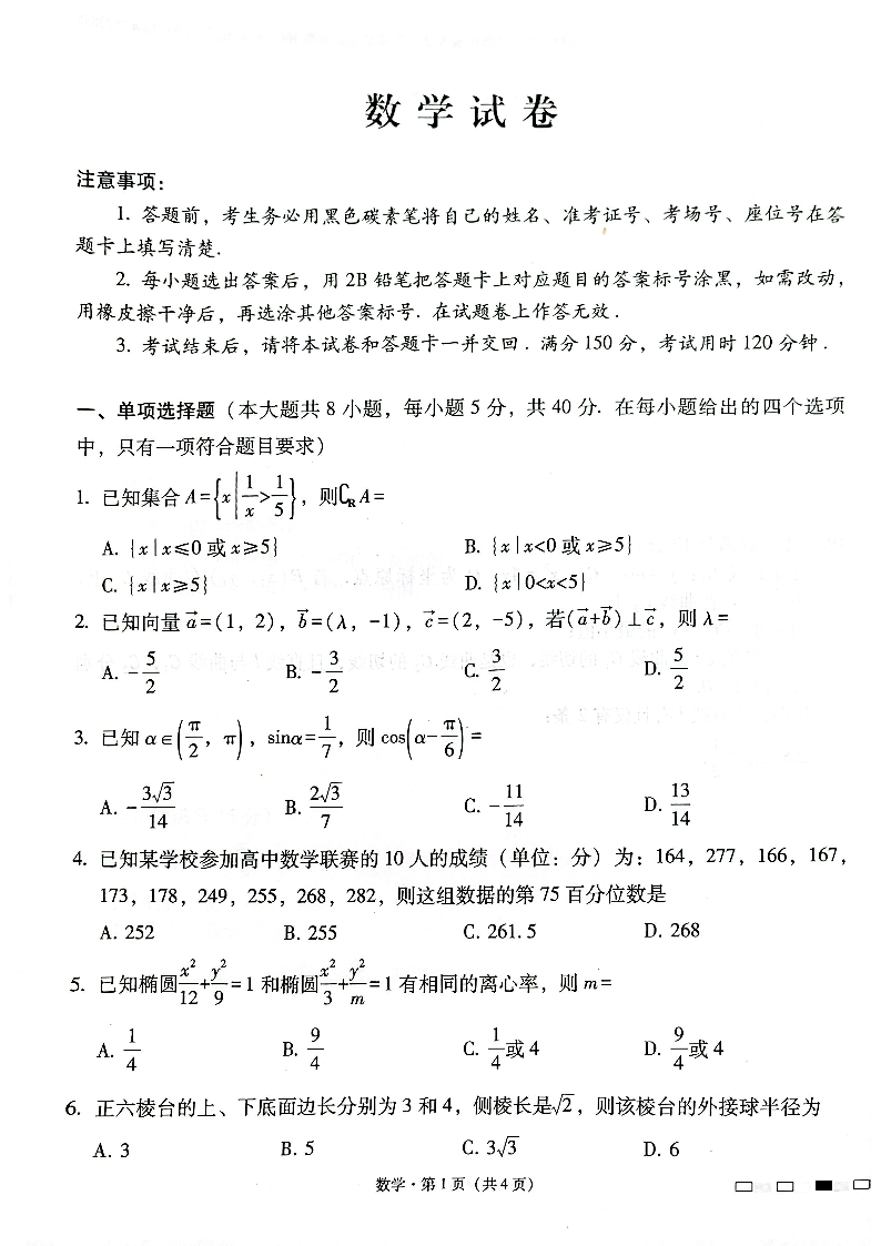 云南师范大学附属中学2025届高三下学期开学考试 数学.pdf