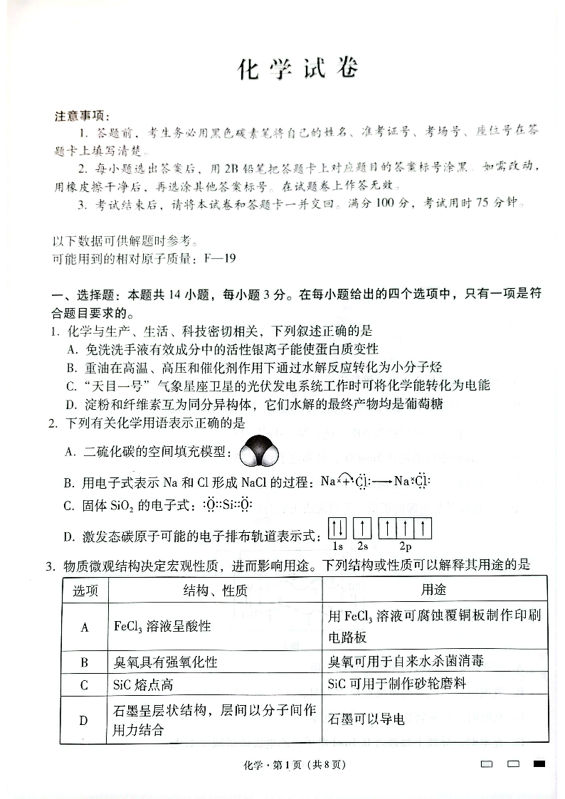 云南师范大学附属中学2025届高三下学期开学考试 化学.pdf