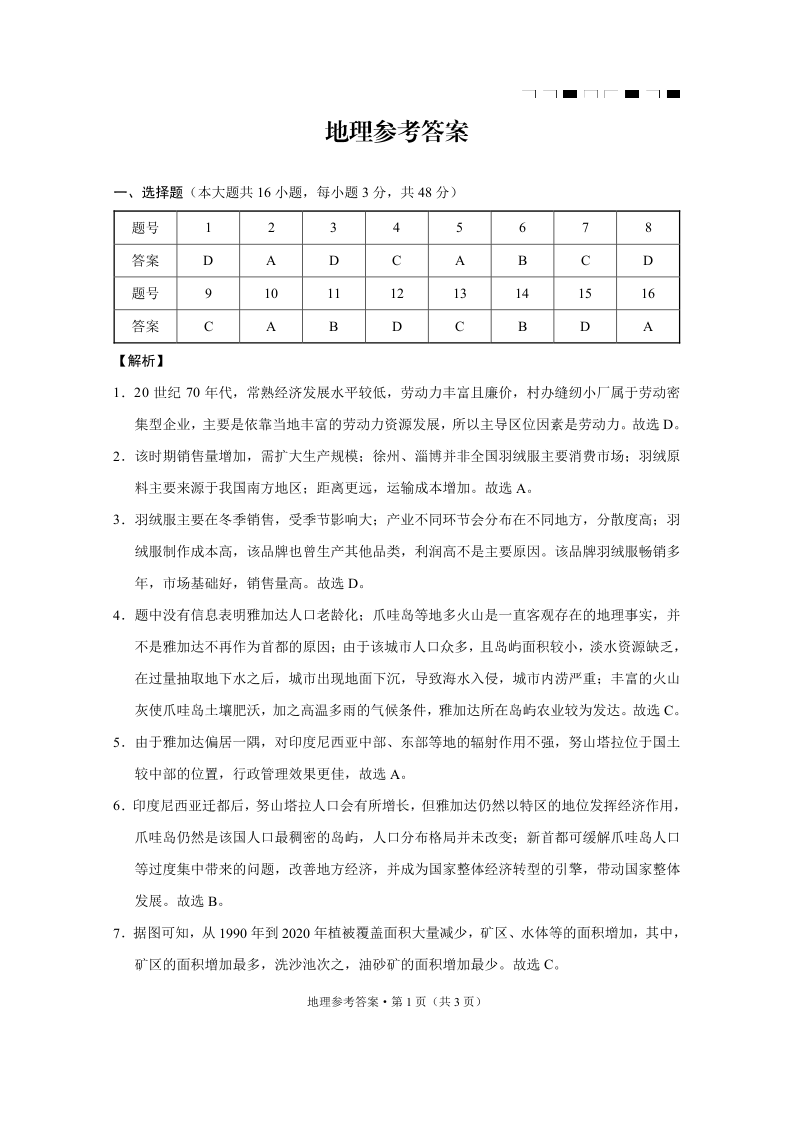 云南师范大学附属中学2025届高三下学期开学考试 地理答案.pdf