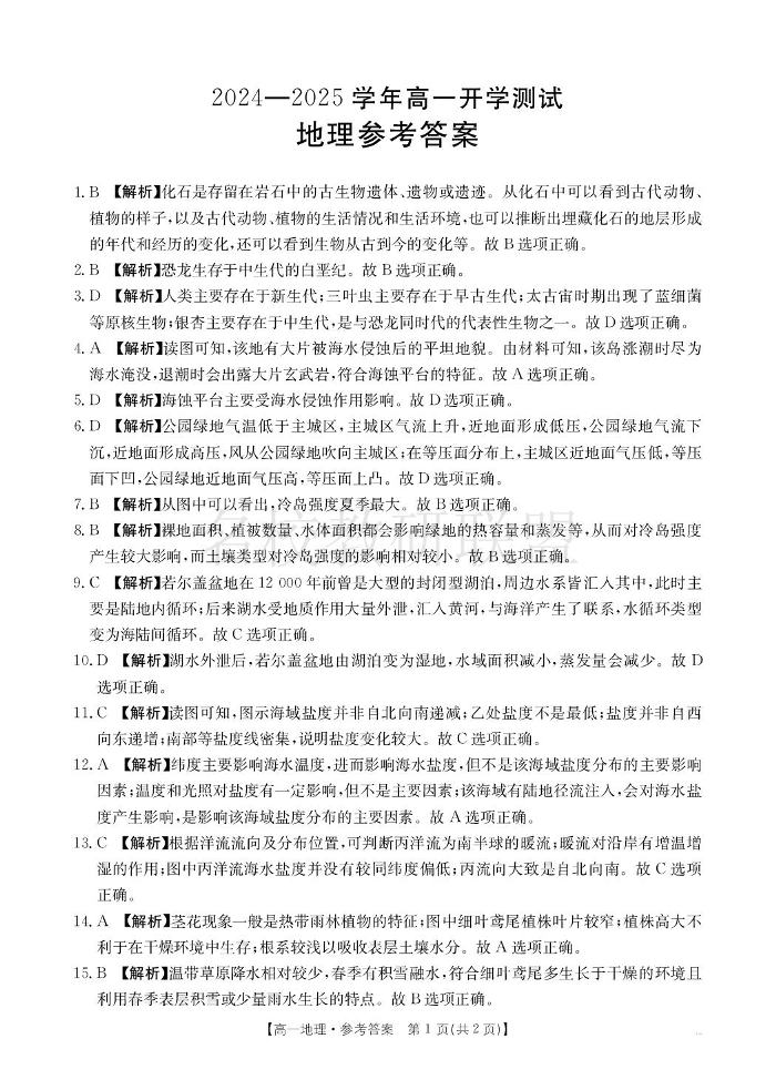 河南省名校大联考2024-2025学年高一下学期开学考试 地理答案.pdf