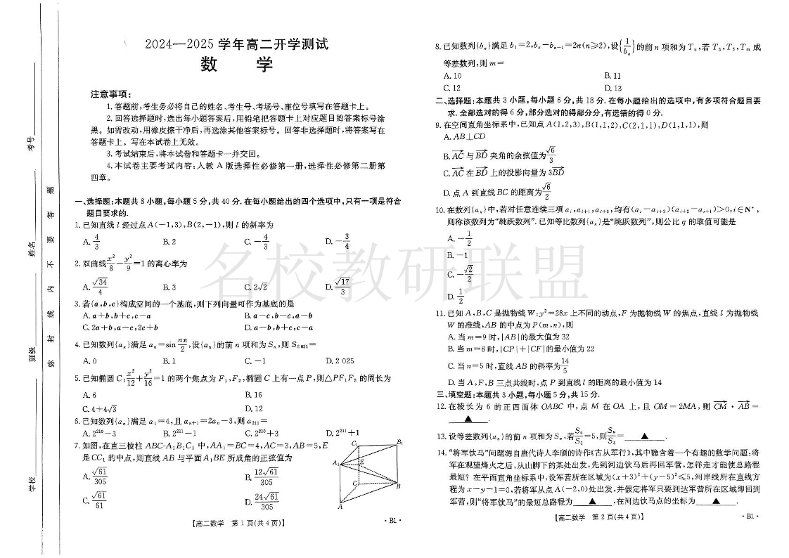 河南省名校大联考2024-2025学年高二下学期开学考试 数学.pdf