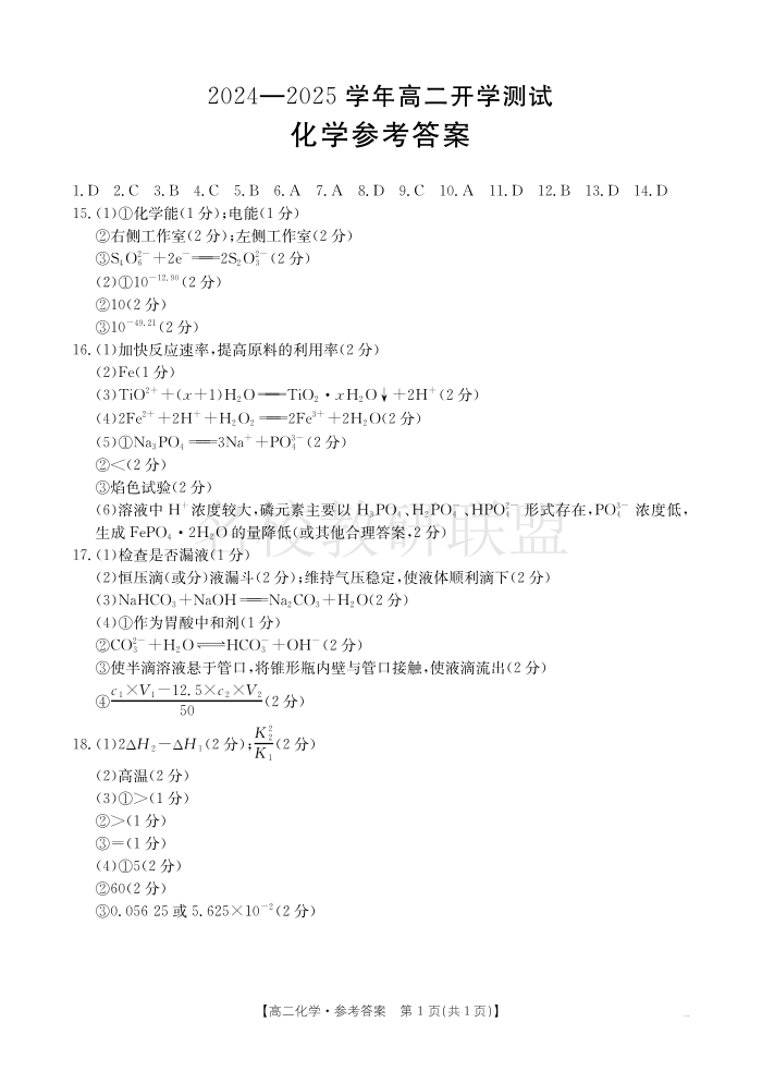 河南省名校大联考2024-2025学年高二下学期开学考试 化学答案.pdf