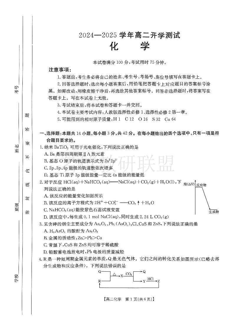 河南省名校大联考2024-2025学年高二下学期开学考试 化学.pdf