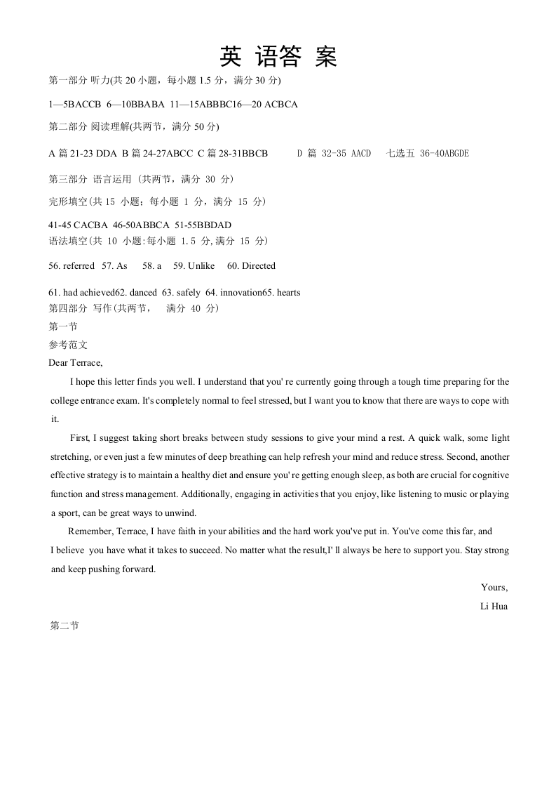 重庆一中2025届2月高考适应性月考卷 英语答案.doc