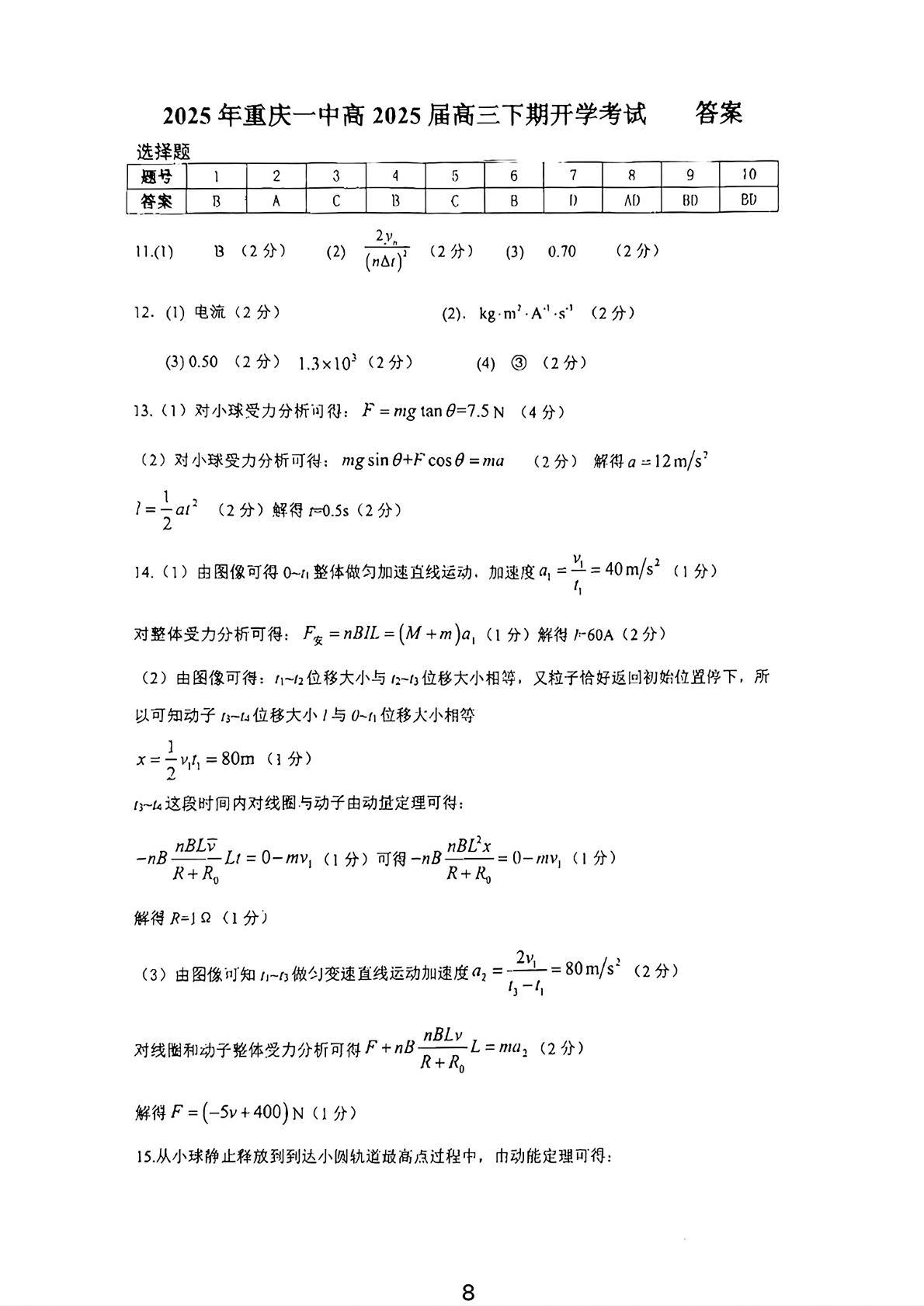 重庆一中2025届2月高考适应性月考卷 物理答案.pdf