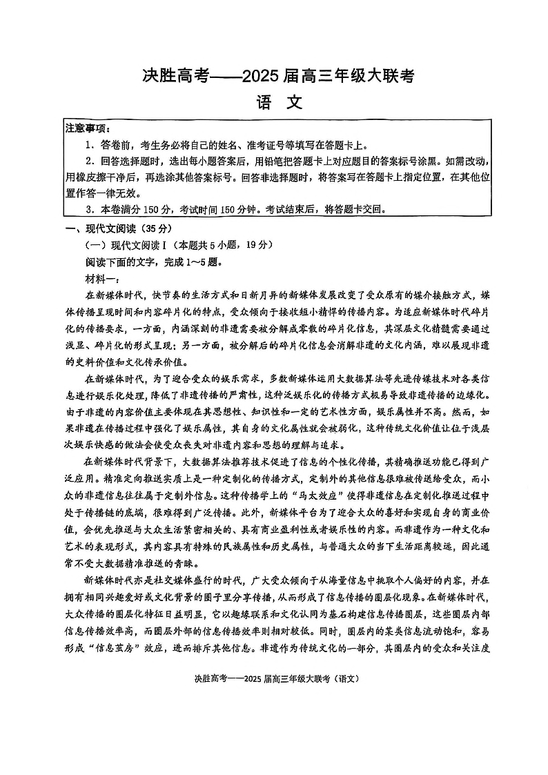 江苏省苏州市九校2025届高三年级2月大联考 语文.pdf