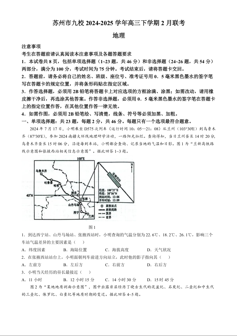 江苏省苏州市九校2025届高三年级2月大联考 地理.docx