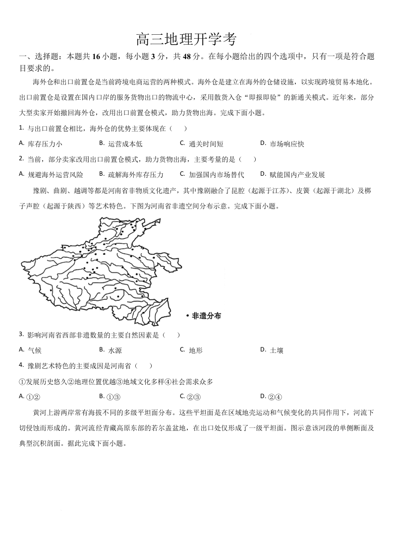 吉林省通化市梅河口市第五中学2025届高三下学期开学考试 地理(含答案).docx