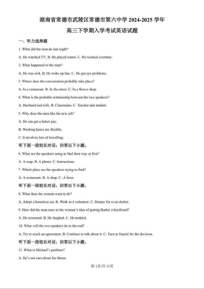 湖南省常德市第六中学2025届高三下学期开学考试 英语.docx