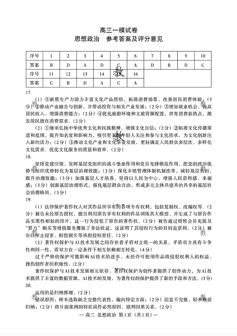 江西省南昌市2025届高三第一次模拟测试 政治答案.pdf