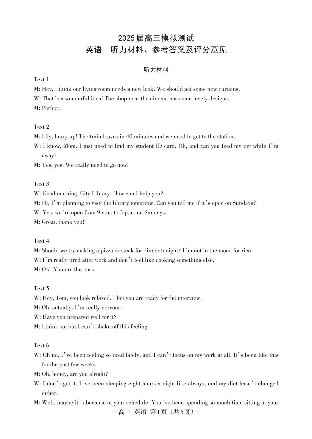江西省南昌市2025届高三第一次模拟测试 英语答案.pdf