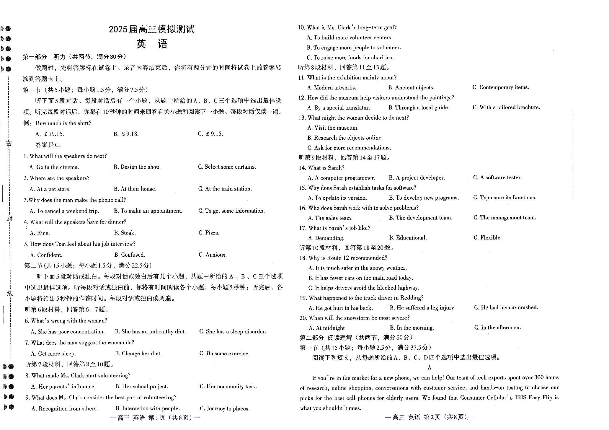 江西省南昌市2025届高三第一次模拟测试 英语.pdf