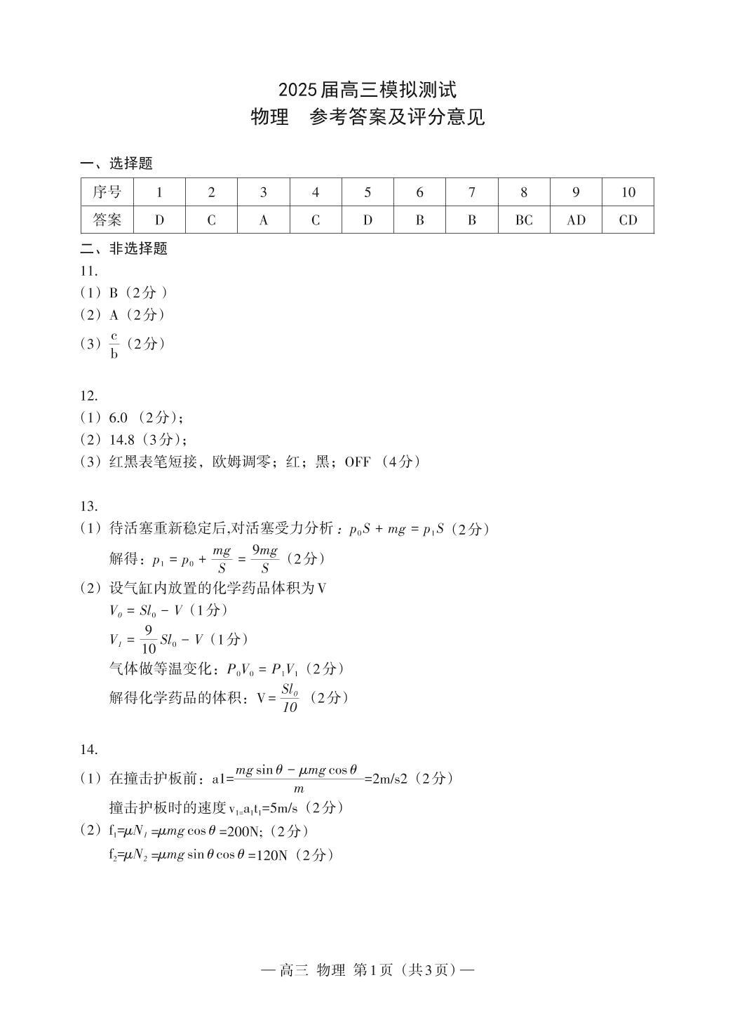 江西省南昌市2025届高三第一次模拟测试 物理答案.pdf