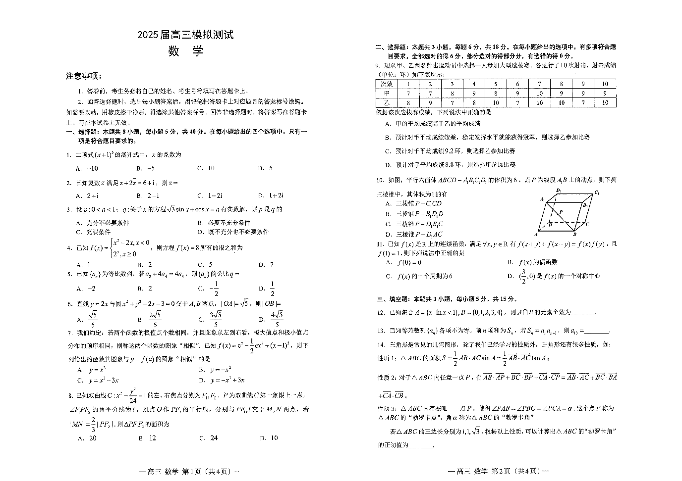 江西省南昌市2025届高三第一次模拟测试 数学.pdf