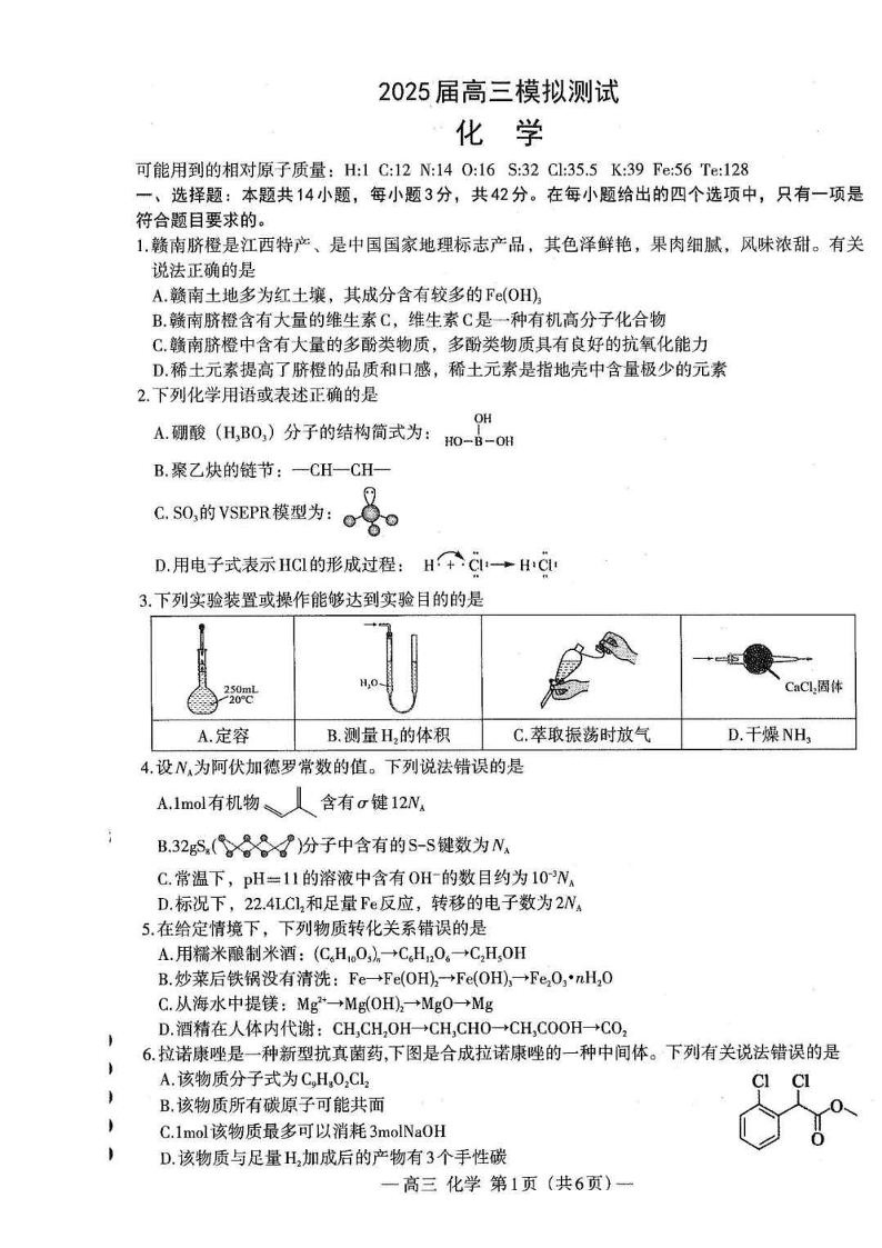 江西省南昌市2025届高三第一次模拟测试 化学.pdf