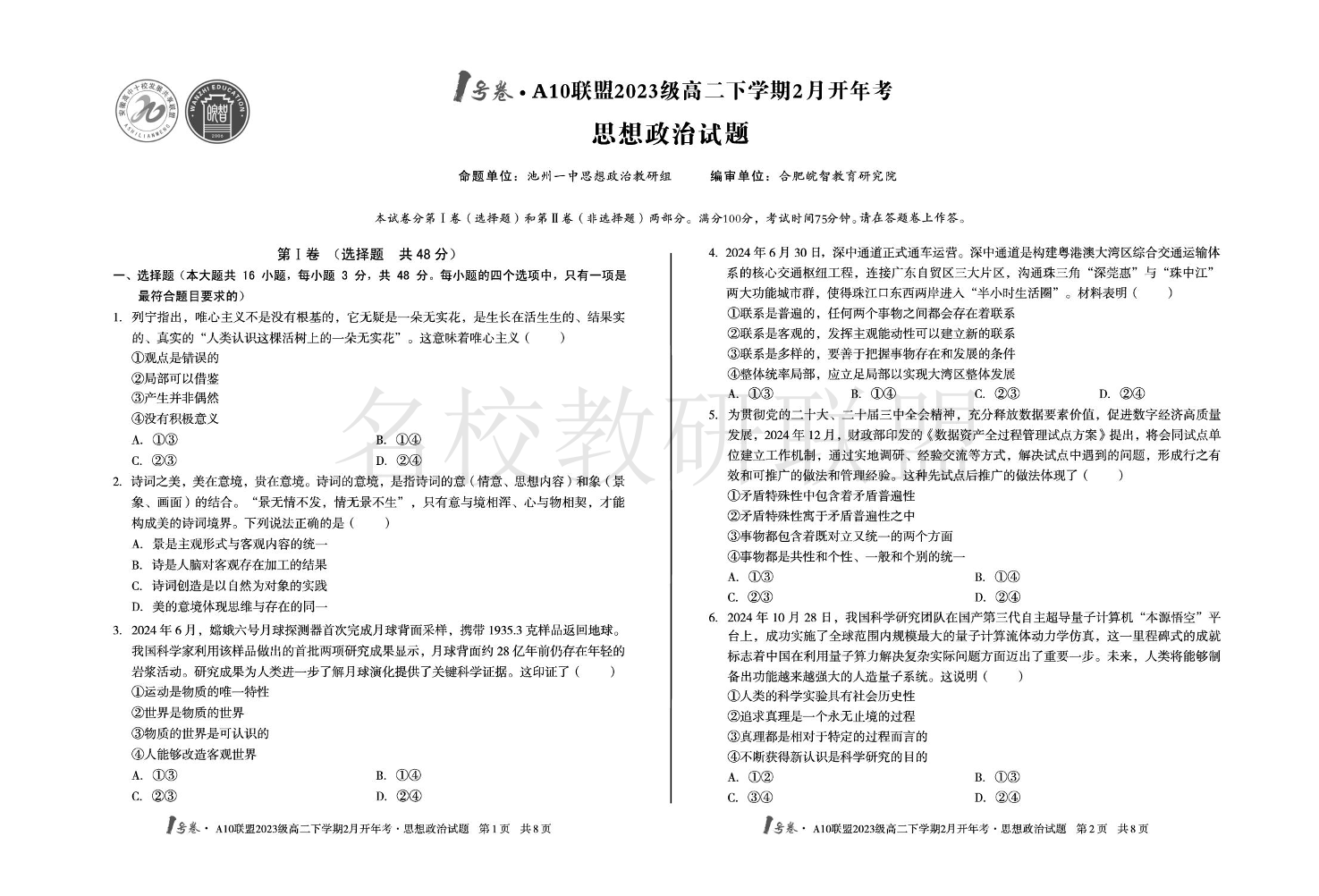 安徽省A10联盟2024-2025学年高二下学期2月开学考试 政治(含答案).pdf