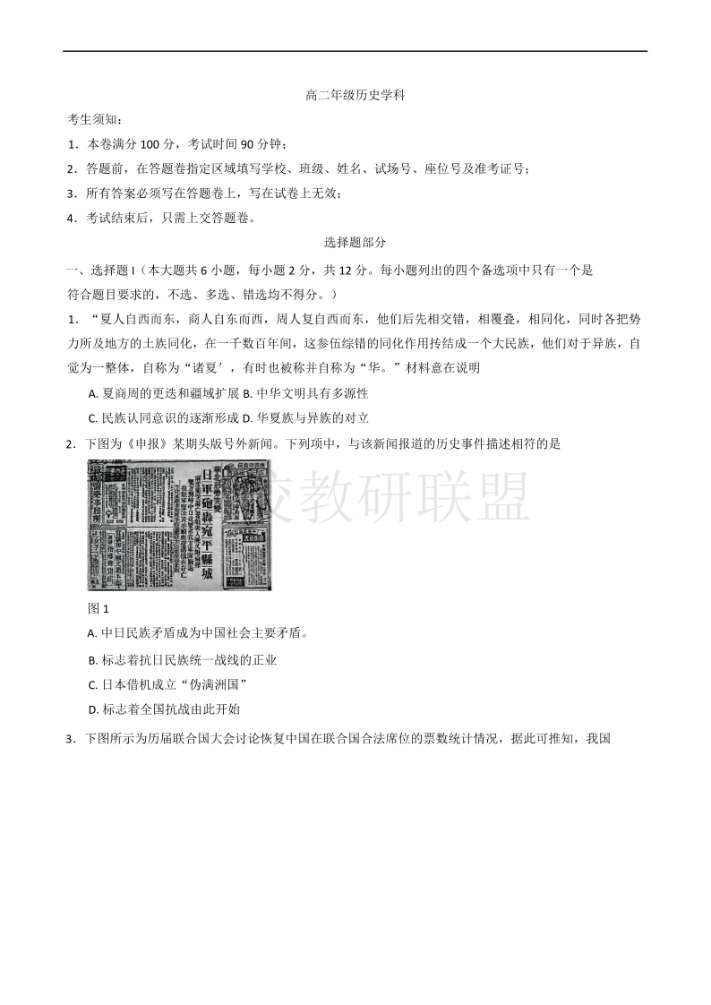 浙江省杭州市部分重点中学2024-2025学年高二下学期开学考试 历史(含答案).pdf