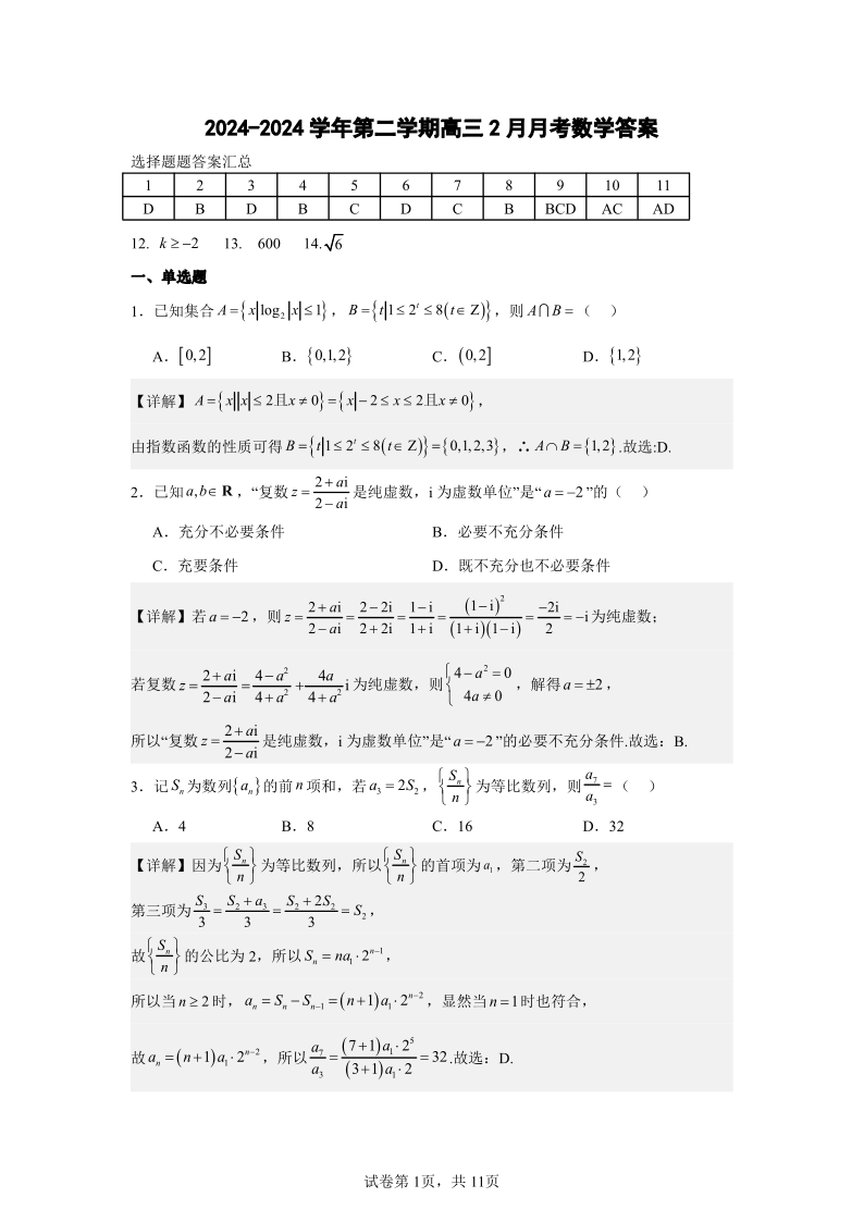 南昌十九中2024-2025学年第二学期2月月考 高三数学答案.pdf