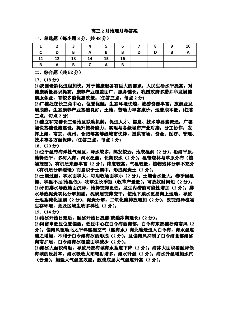 南昌十九中2024-2025学年第二学期2月月考 高三地理答案.pdf