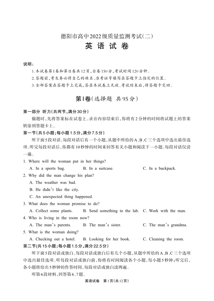 德阳市高中2022级质量监测考试(二)英语.pdf