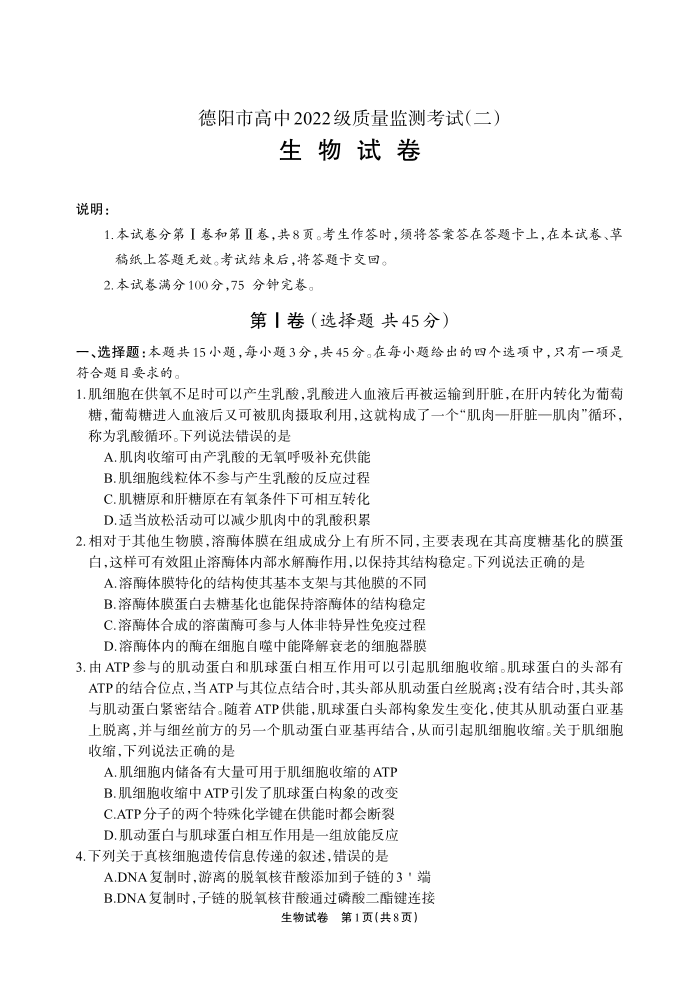 德阳市高中2022级质量监测考试(二)生物.pdf