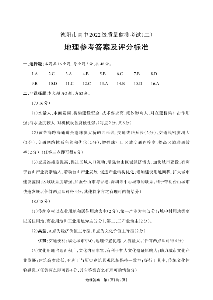 德阳市高中2022级质量监测考试(二)地理答案.pdf