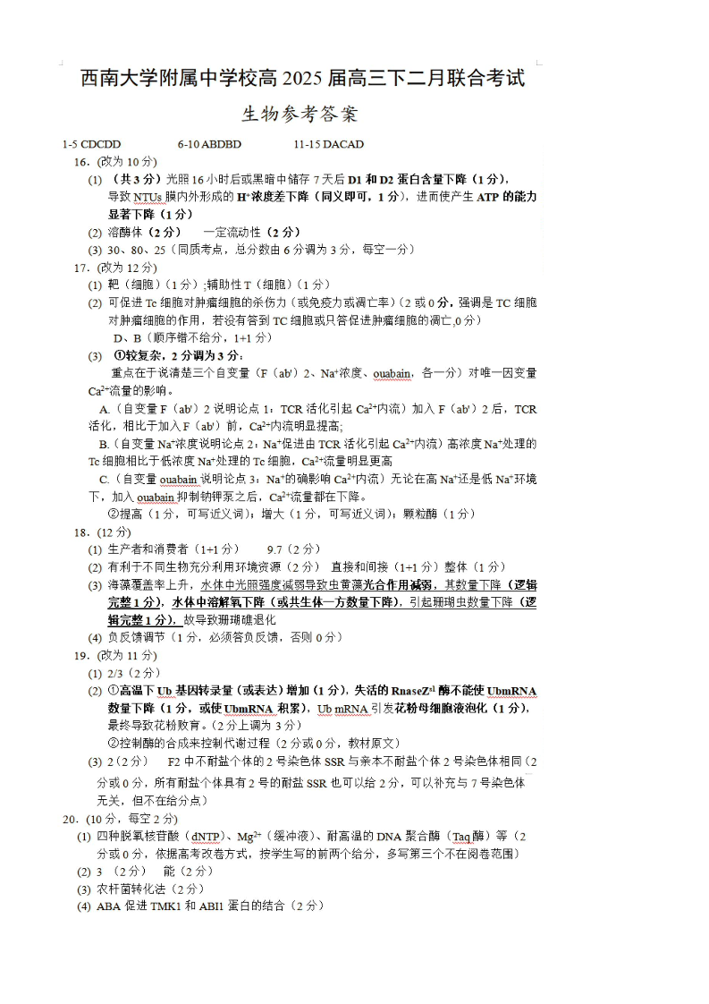 重庆市高2025届拔尖强基联盟高三下2月联合考试 生物答案.docx