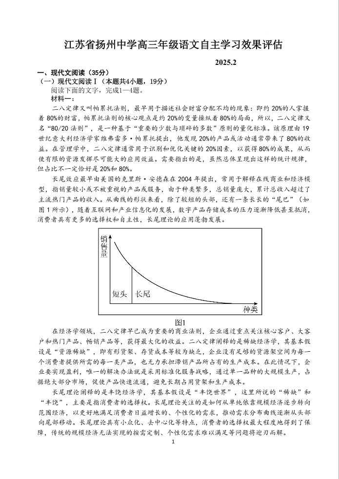 江苏省扬州中学2024-2025学年高三下学期2月月考 语文(含答案).docx