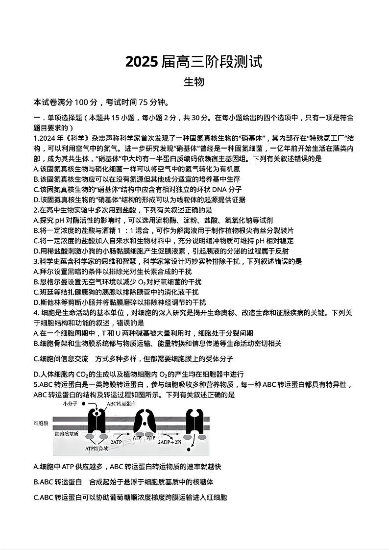 辽宁省本溪高级中学2025届高三下学期开学考试 生物(含答案).pdf