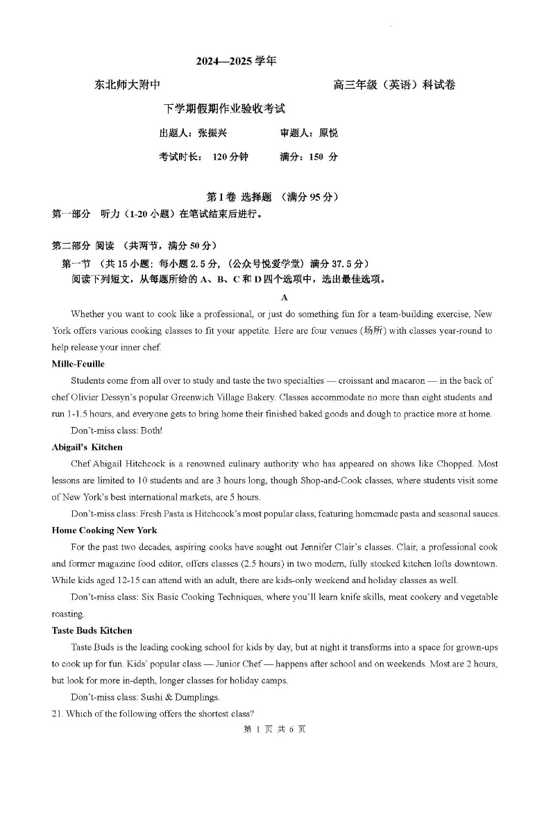东北师大附中2025届高三下学期期初考试 英语(含答案).pdf