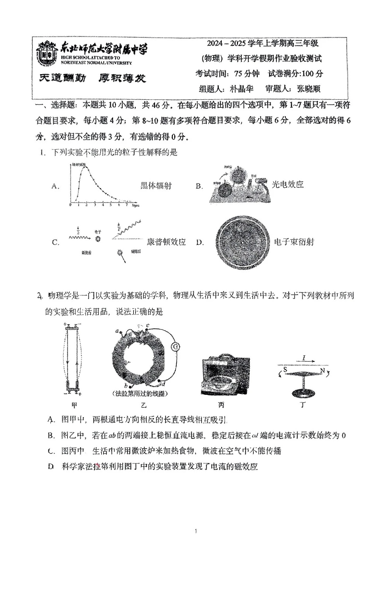 东北师大附中2025届高三下学期期初考试 物理(含答案).pdf