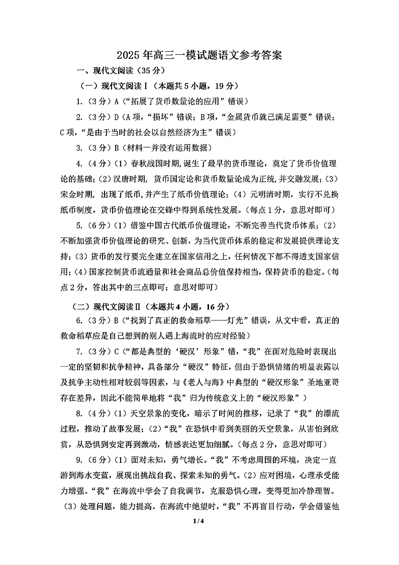 山东省菏泽市2025年高三一模考试 语文答案.pdf