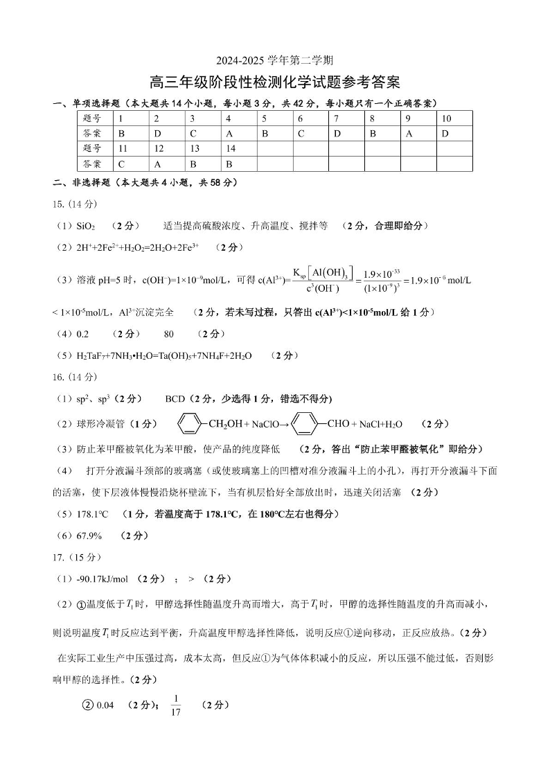 安徽省合肥市普通高中六校联盟2025届高三年级阶段性检测 化学答案.pdf