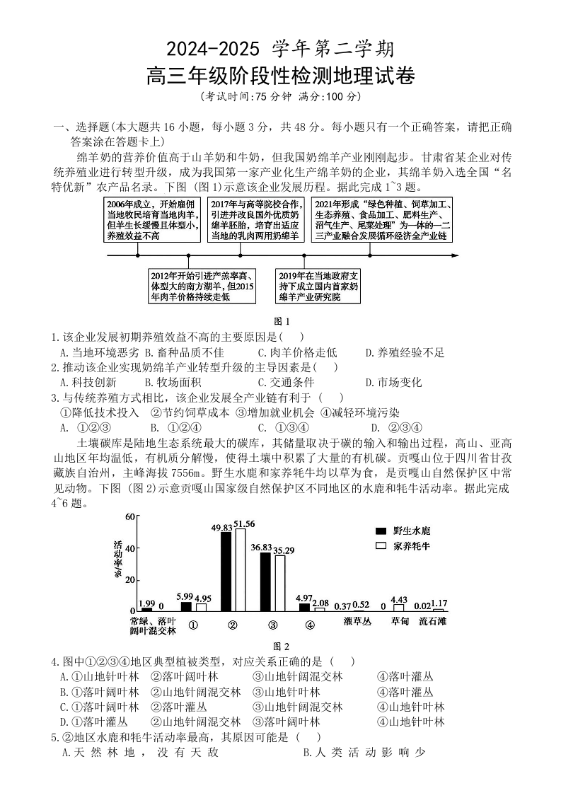 安徽省合肥市普通高中六校联盟2025届高三年级阶段性检测 地理(含答案).doc