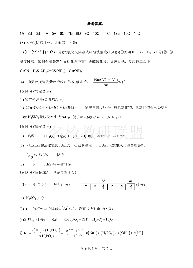 玉溪一中2024-2025学年高二下学期开学考 化学答案.pdf