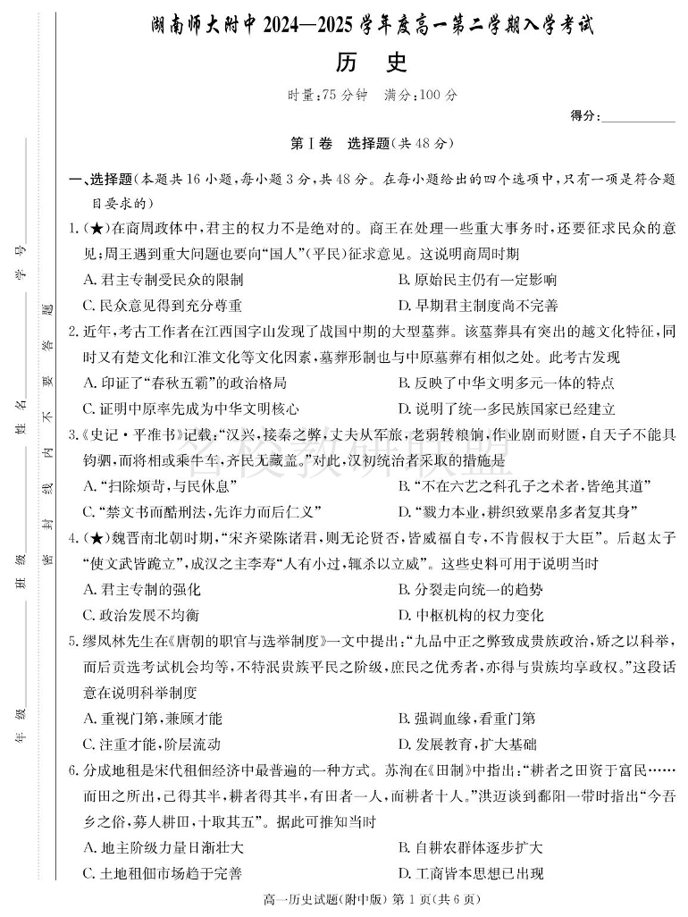 历史试卷(附中高一入学2期).pdf
