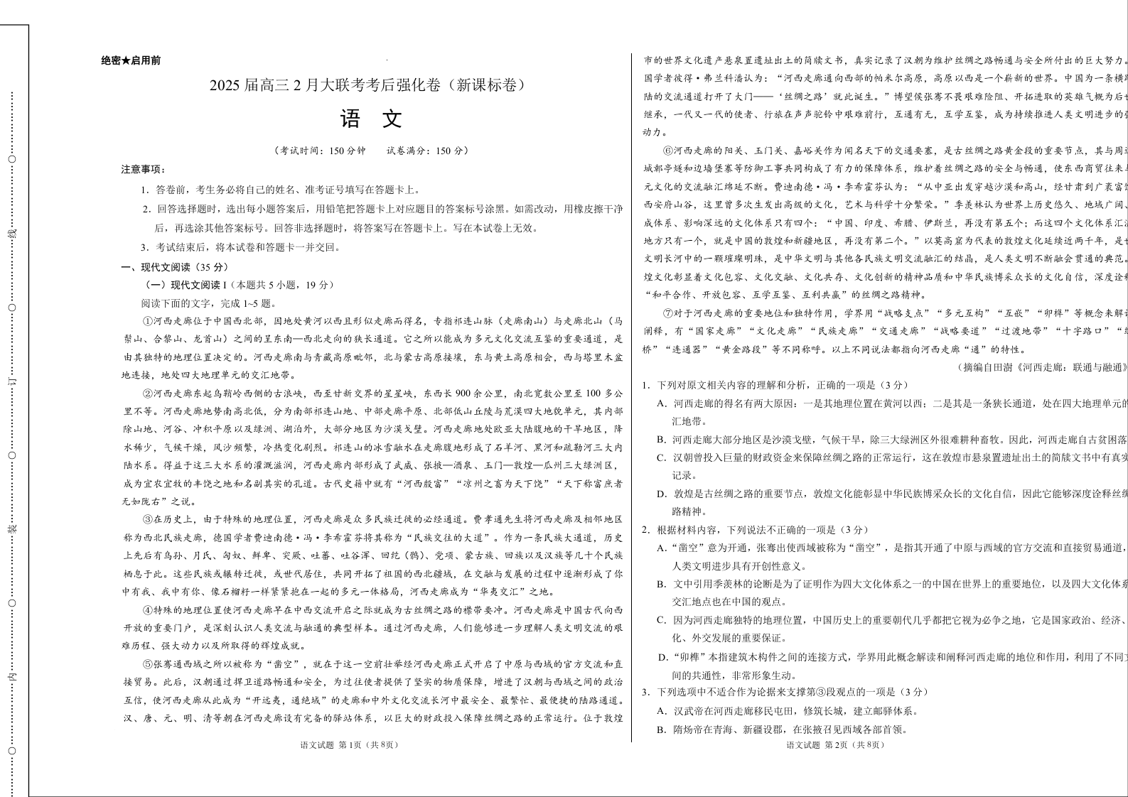 语文-2025届高三2月大联考考后强化卷(新课标卷)(考试版).docx