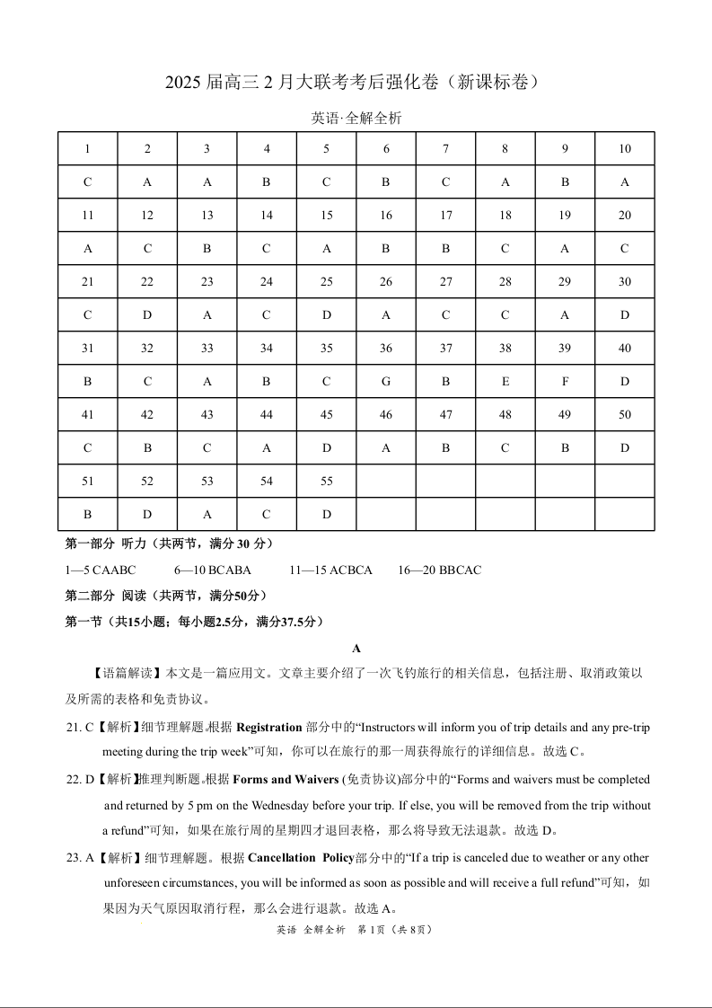 英语-2025届高三2月大联考考后强化卷(新课标卷)(全解全析).docx