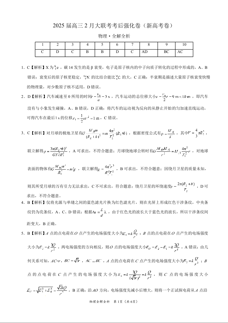 物理-2025届高三2月大联考考后强化卷(云南卷)(全解全析).docx