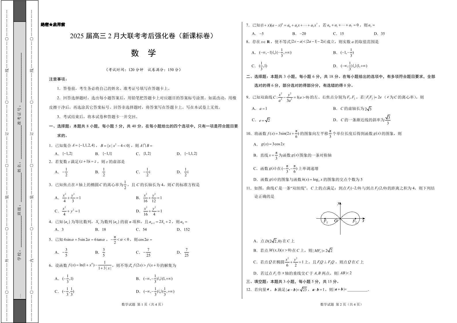 数学-2025届高三2月大联考考后强化卷(新课标卷)(考试版).pdf