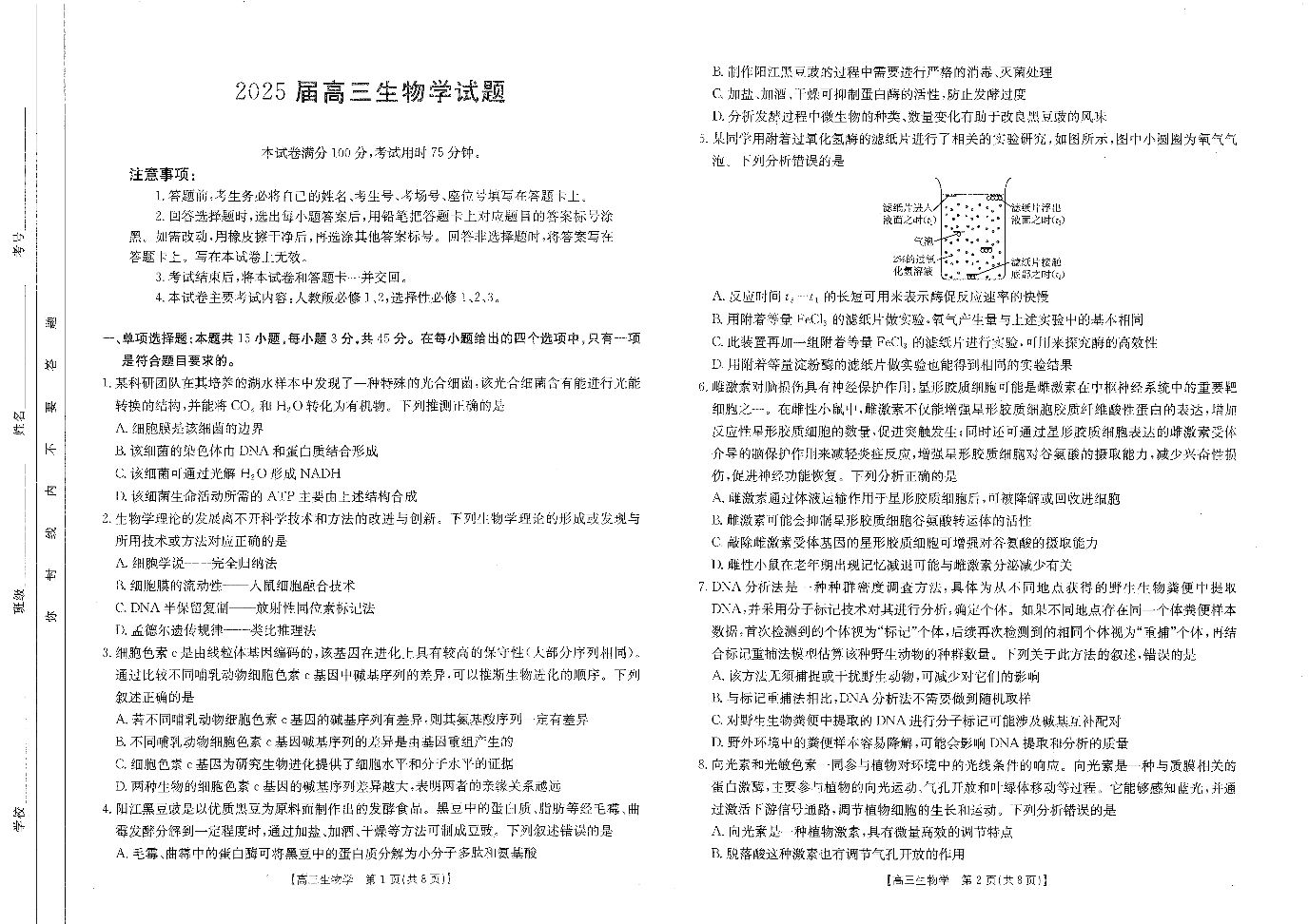 四川省雅安中学2025届高三下学期2月入学考试 生物.pdf
