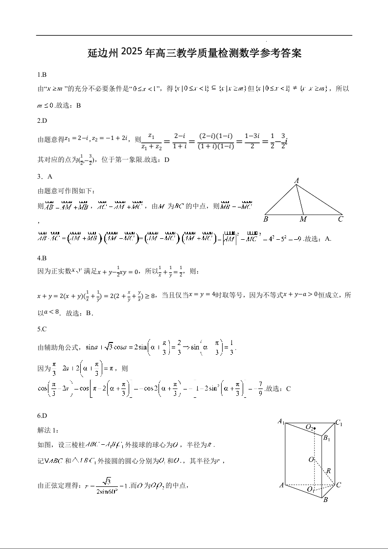延边州2025年高三教学质量检测 数学答案.docx